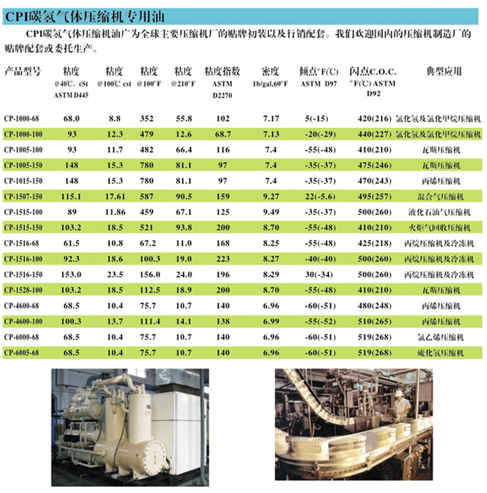 深圳市華萊實業(yè)有限公司是美國CPI潤滑油在中國區(qū)的XX代理,由一群合成潤滑油專家及壓縮機專業(yè)人士所組成的專業(yè)公司,為壓縮機廠家提供壓縮機潤滑油(碳氫氣體、工藝氣體、空氣、制冷系統(tǒng))解決方案,是壓縮機潤滑油行業(yè)的領(lǐng)導(dǎo)者。